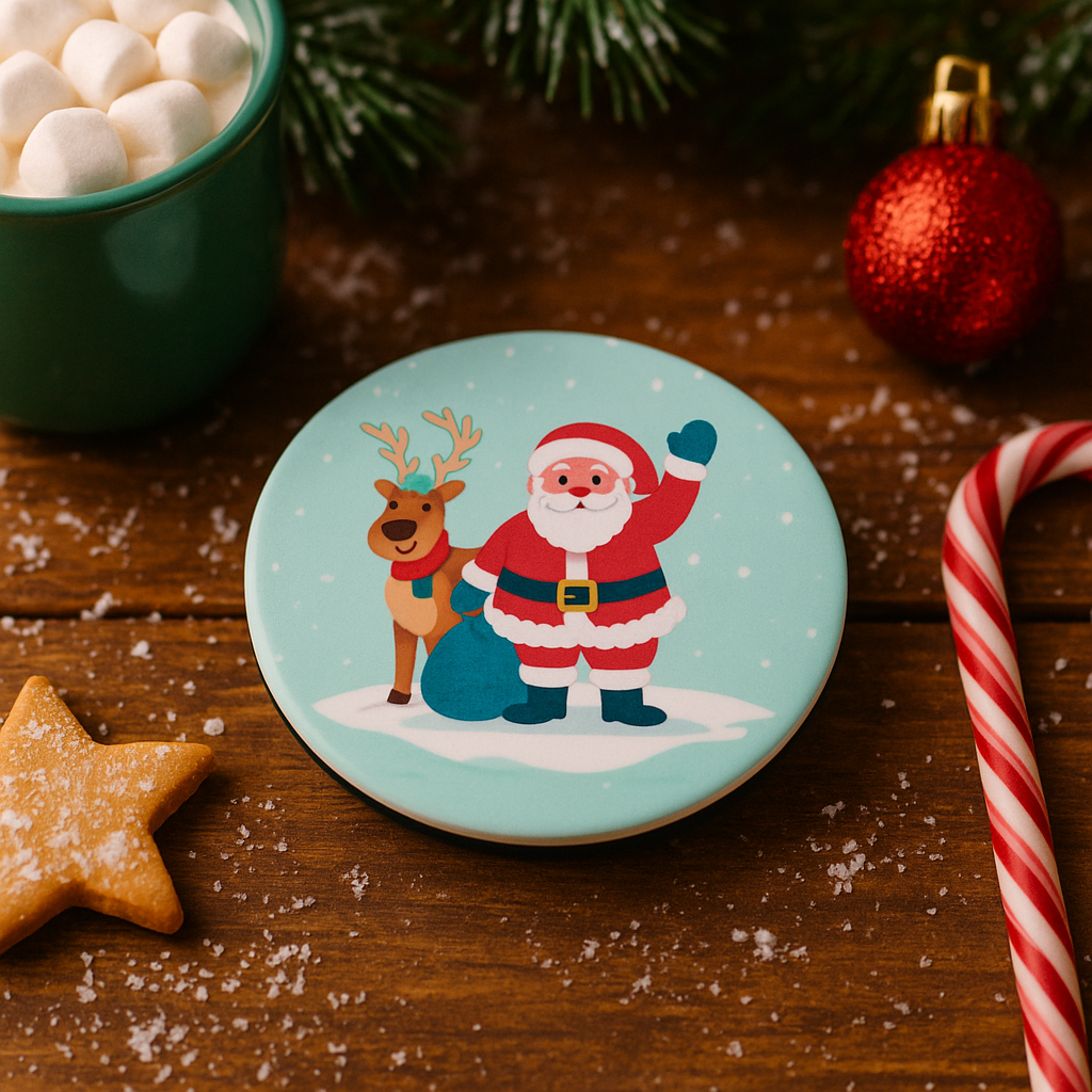 Add a festive touch to your table settings with our charming Christmas Coaster Collection. This delightful range features a variety of holiday-themed designs, from whimsical Santa and reindeer illustrations to cozy winter motifs like snowflakes, Christmas trees, gingerbread men, and twinkling stars. Crafted with vibrant colors and playful artwork, each coaster brings seasonal cheer and personality to your home.